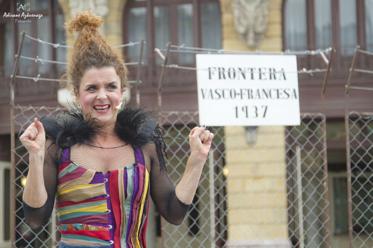 Tras la Frontera es un espectáculo multidisciplinar, es un viaje desde nuestro terrible pasado ligado a las guerras y al exilio forzoso de nuestro pueblo hacia Francia y otros destinos. Un emotivo viaje que continúa por nuestra vergonzosa actualidad en la que repetimos los errores del pasado, pero desde el lado del opresor, sin recordar el dolor vivido. Un viaje que acaba en un futuro inventado donde pasar una frontera se convierte en un reality show que hace espectáculo de la injusticia y la miseria, mostrándonos en qué nos podemos convertir.