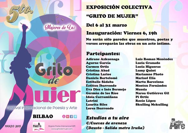 El Festival Internacional de Pesía y Arte Grito de Mujer Bilbao comienza en Marzo con una exposición colectiva en Estudios a tu aire, en la cual participo.